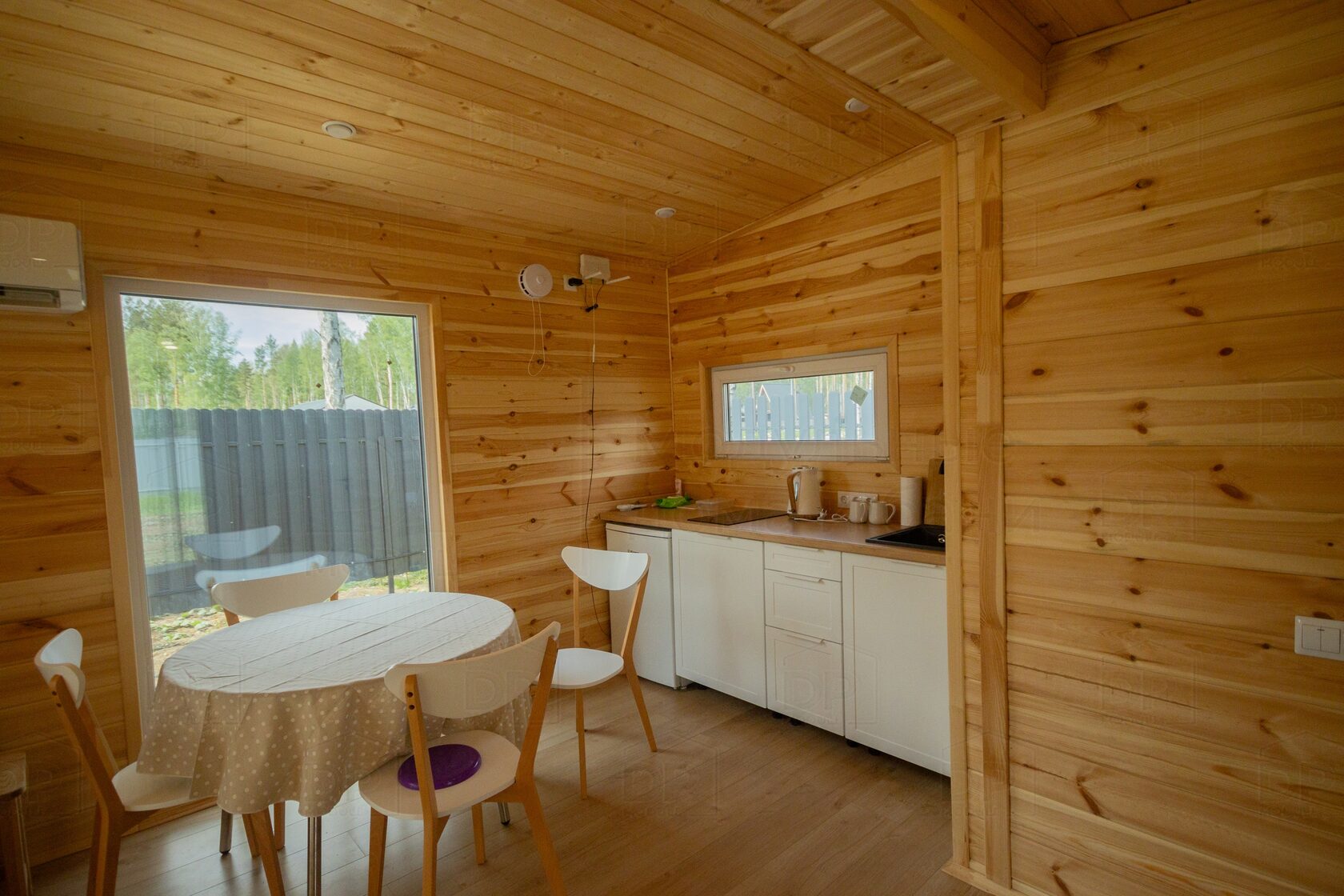 - Внутри — имитация бруса (экологично и эстетично)